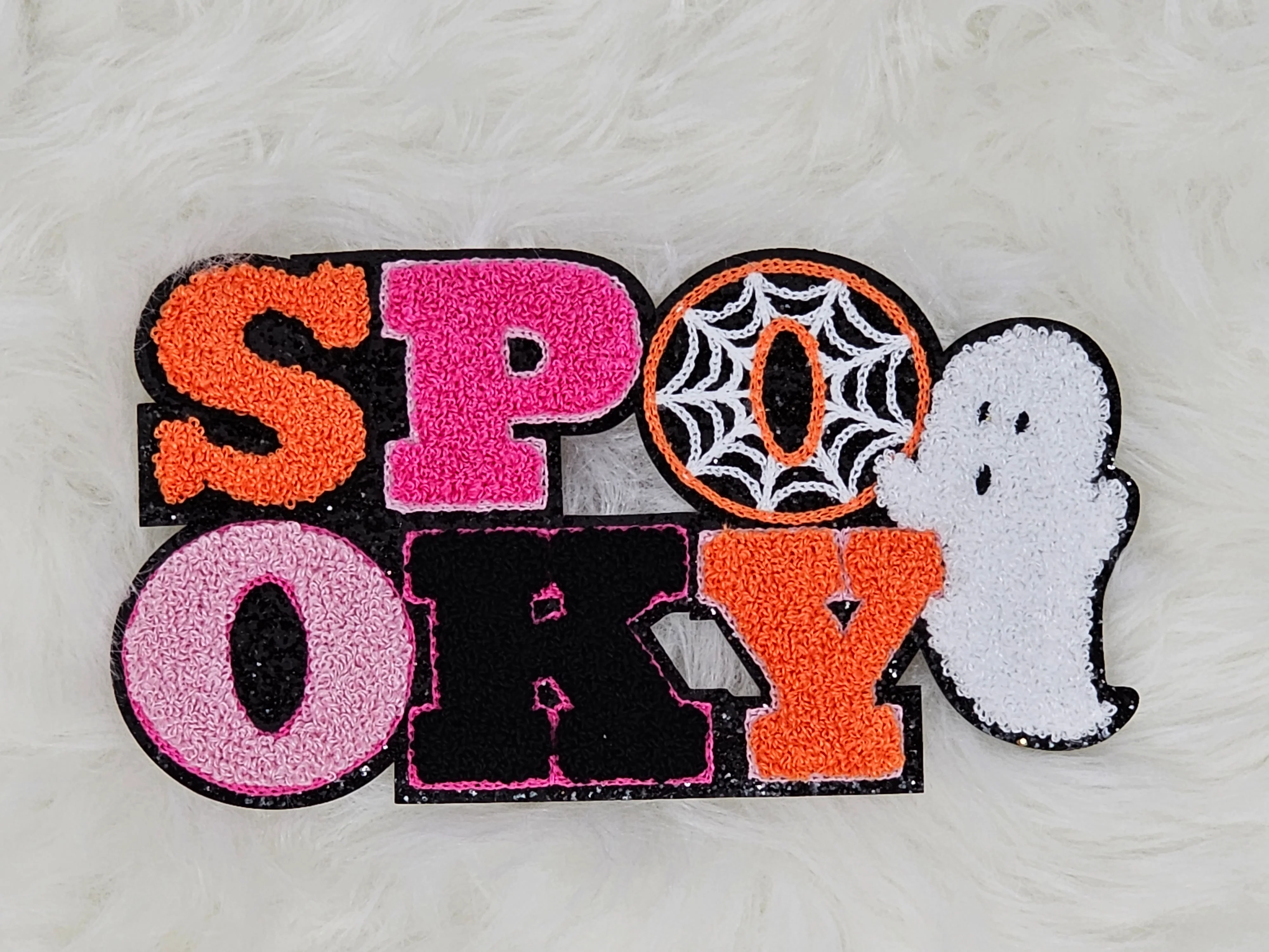 Large Spooky Ghost with Black Glitter Iron On Patch