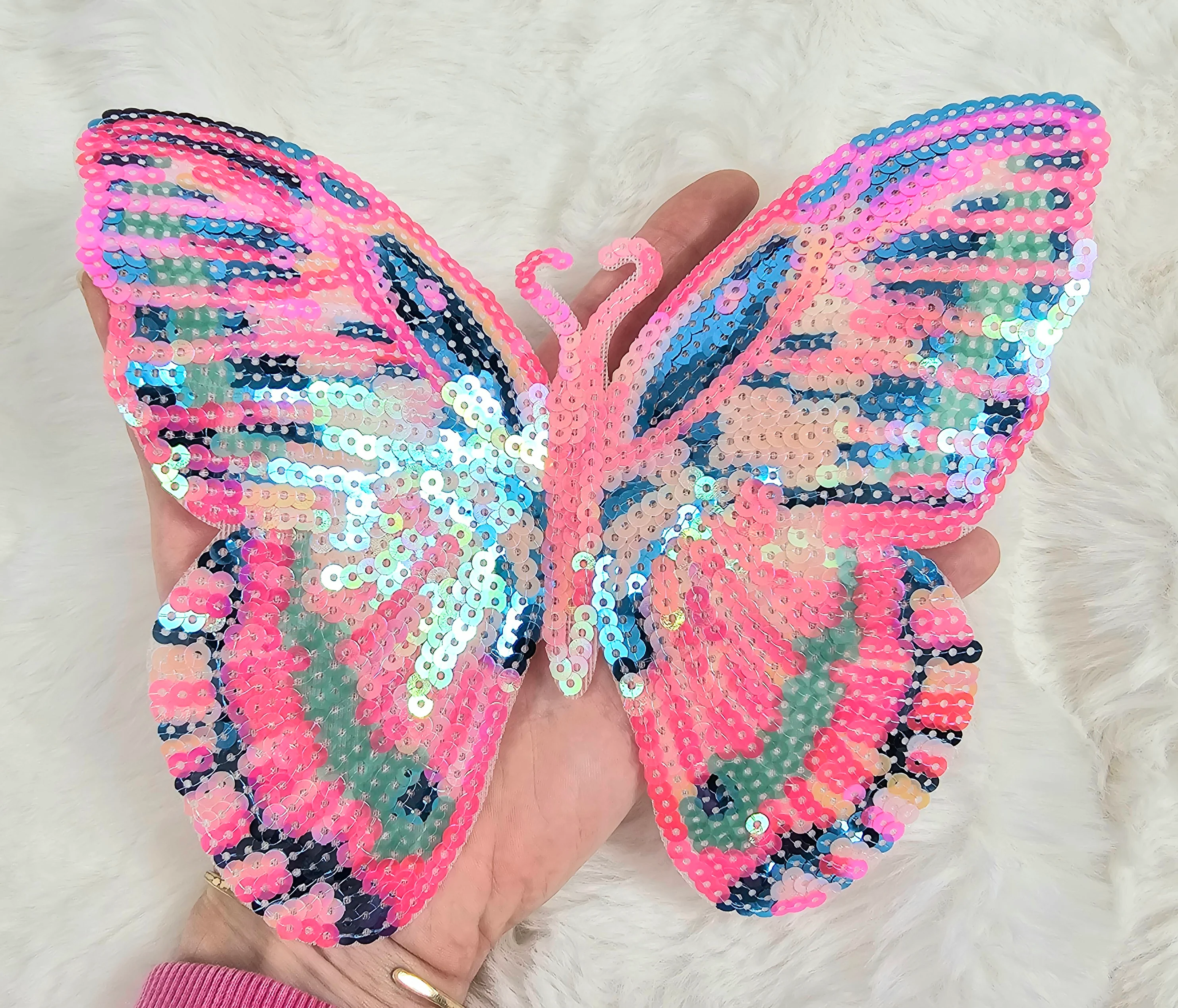 Pink Butterfly Sequin Iron On Patch