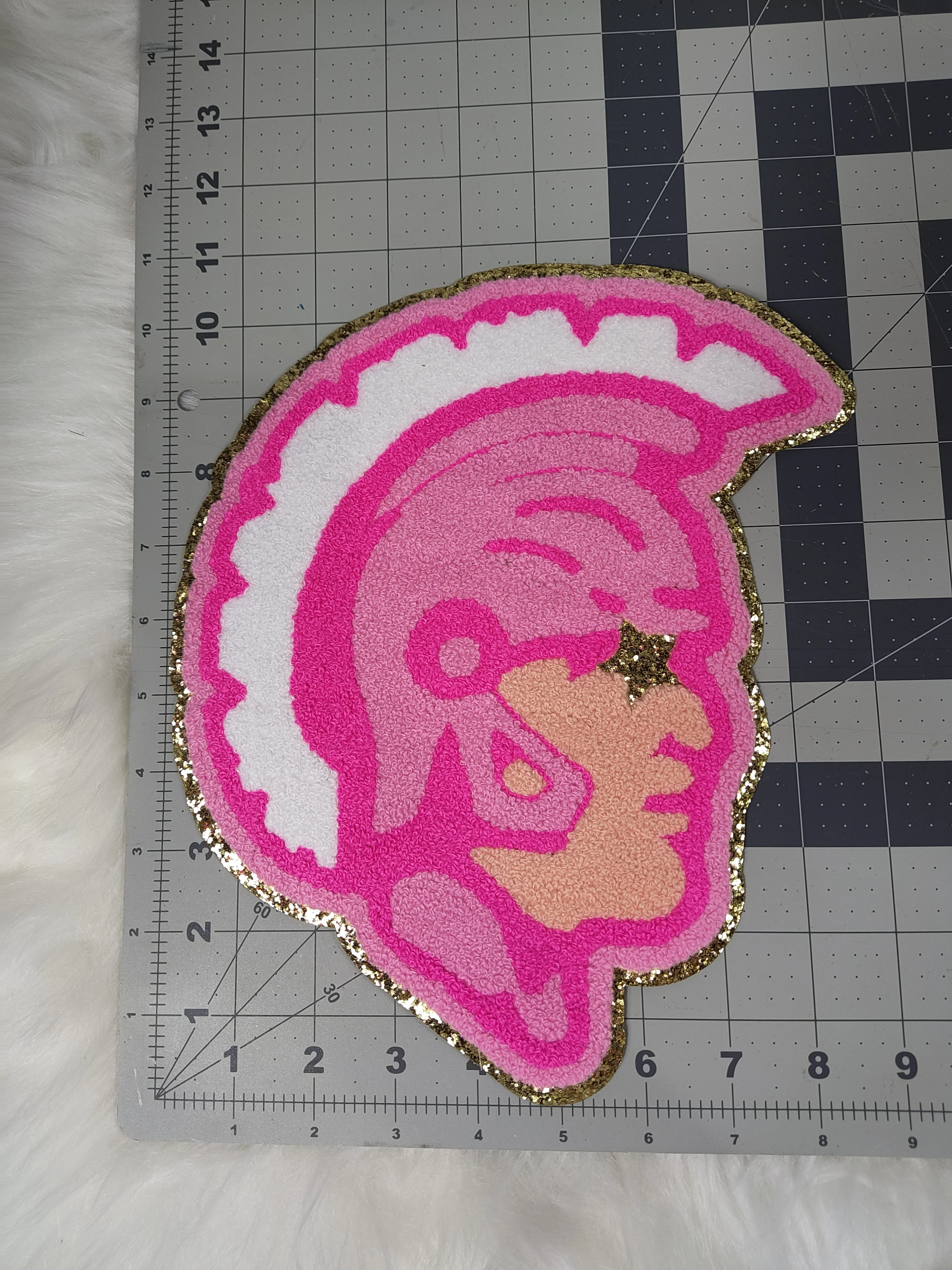 Hot Pink Trojan Spartan Mascot with Star Eyes Large Chenille Iron-on Patch