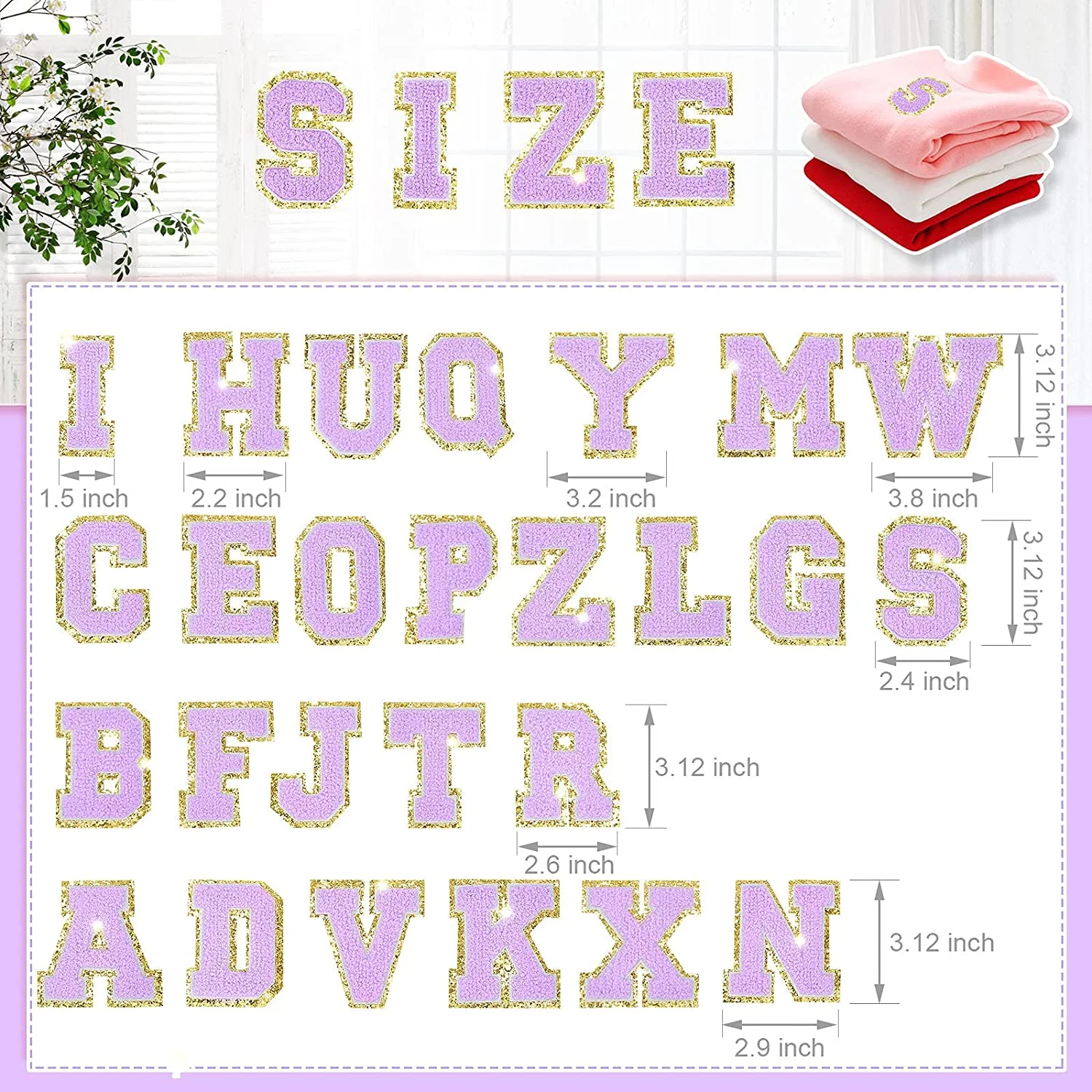 Purple Chenille Iron On Gold Glitter Letter Patches